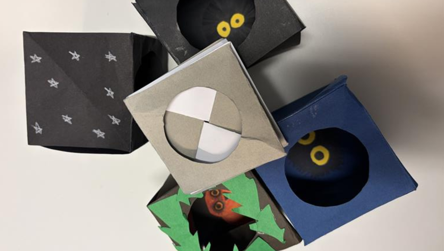 I den hÀr verkstaden fÄr deltagarna skapa ett nattdjur av papper och kartong som plötsligt dyker upp och sÀger: Kuckuu! Alla barn Àr varmt vÀlkomna, men yngre barn tillsammans med egen vuxen.